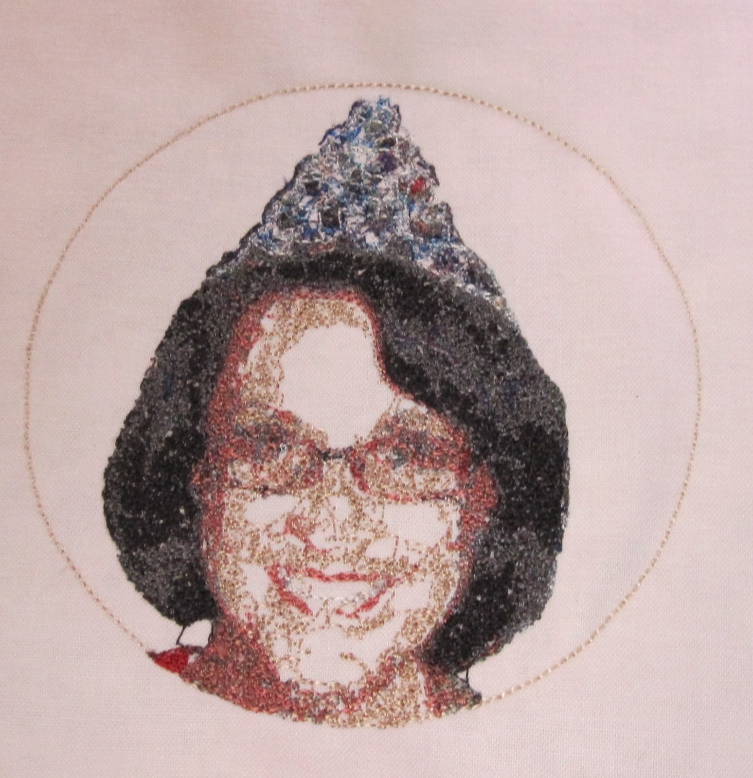 There are 35 different colors in Marcia's photo stitch out. I got them all ready to go ahead of time.
